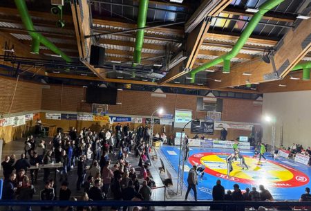 80 kg Griechisch-Römisch: Antwort der Falken in Großbuchstaben. Florian Scheuer kam wie ein Sturm, punktete im Takt und zwang Ahmad Ismail Rahman schließlich auf die Schulter – ein Vierer, der die Halle explodieren ließ. 14:14.