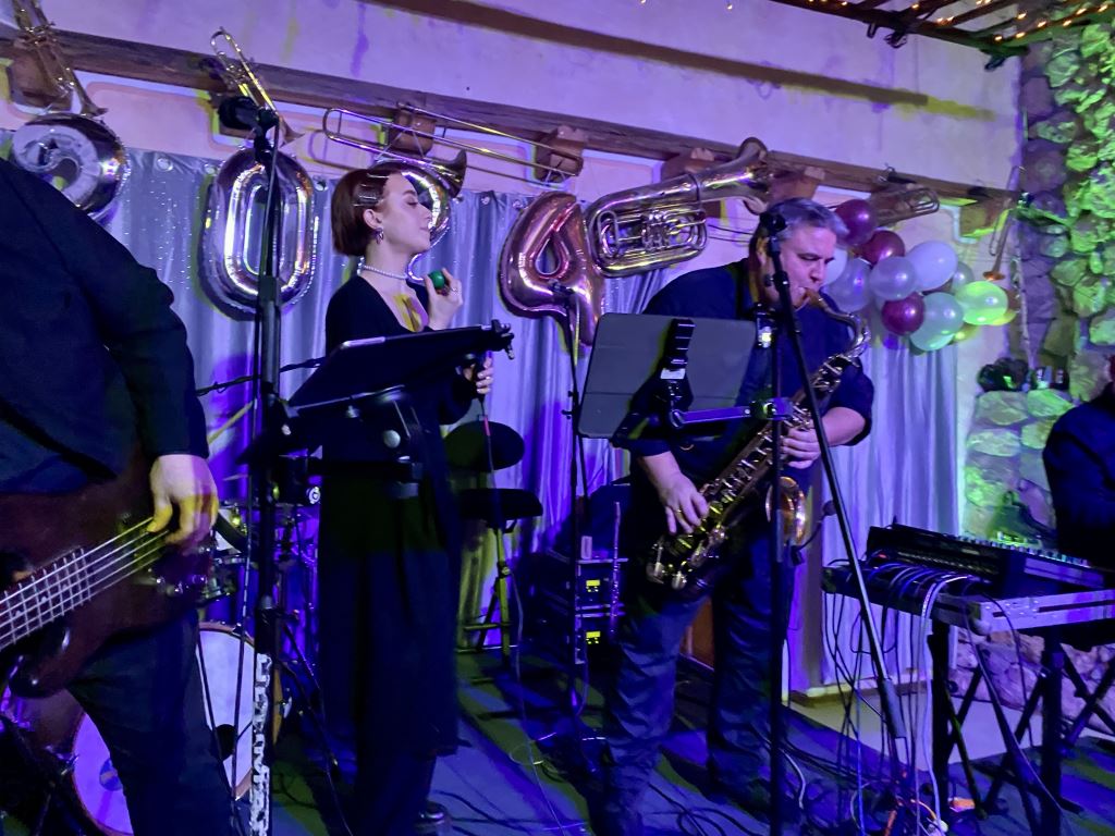 Für die den ganzen Abend über anhaltende Top-Stimmung im Stadl waren die 5 Profi-Musiker aus zwei verschiedenen Bands (Sandy-Show-Band und Freddy-Wonder-Combo) verantwortlich, die durch ihre professionelle Musik und ihre fantastische Musikauswahl für eine immer volle Tanzfläche sorgten. Die Überraschung des Abend war aber fraglos das große Viernheimer Gesangstalent, nämlich die allseits bekannte Megan Hill, die extra aus London angereist kam um die Silvestergäste mit ihrer Power-Stimme zu begeistern. Die Performance von Megan war wirklich einzigartig und überwältigend. Ob Amy Winehouse, Adele, Chaka Khan, Abba oder Tina Turner, es war „Simply the best“!