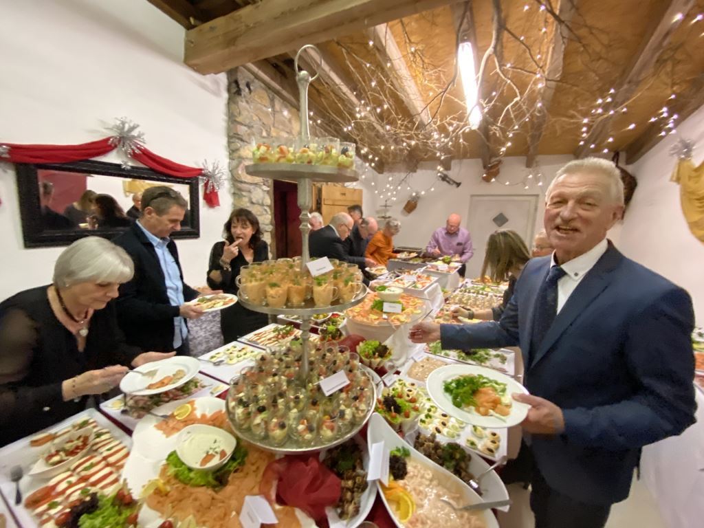 Nach der kurzweiligen Begrüßung durch Rolf Pilz, mit den Anekdoten der Ski-Club-Kicker bei ihren Skifahrten ins Stubaital, ins Kleine Walsertal, und kürzlich erst ins Pitztal ins Top-Hotel „Wildspitze“, war es ihm vorbehalten das Buffett für eröffnet zu erklären.