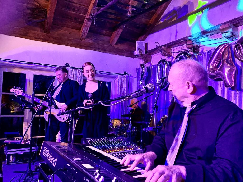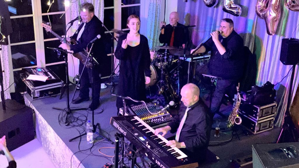 Mit Walter „Kippe“ Helbig an den Drums, mit Kai Häfner (Sax) und Chris Linder (Bass), beide begnadete Sänger, und nicht zuletzt mit Harry Schreck am Keyboard, der schon mit „Six was Nine“ 1994 den Welthit „Drop dead beautiful“ performte, und mit seiner Band auf Welttour unterwegs war, und sogar schon von keinem geringeren als Paul McCartney engagiert wurde. Es standen nur Top-Profis auf der Stadl-Bühne, die mit sehr viel Spielfreude und mit großem Spaß den ganzen Abend über für eine Super-Stimmung bei den Silvestergästen sorgten.