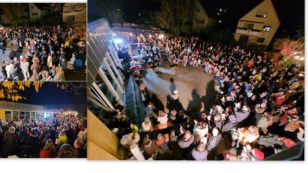 Viernheim (T.Sebert) – Riesiger Andrang mit mehreren hundert Teilnehmern herrschte beim St. Martins -Umzug des AWO Familienzentrums am vergangenen Freitag (14.11.25). Neben den vielen bunt leuchtenden Laternen der Kinder begeisterten besonders die „Alleine-Sängerinnen und Sänger“ sowie das St. Martinsspiel.