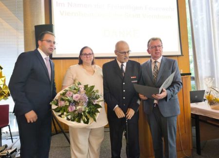 Nach der musikalischen Eröffnung durch die Musikschule Viernheim begrüßte Bürgermeister Matthias Baaß, Michael Ahnert, seine Ehefrau und alle Anwesenden. Baaß bedankte sich für die Zeit, in der Ahnert engagiert für die Freiwillige Feuerwehr und die Stadt Viernheim sein Amt ausführte und wünschte ihm alles Gute, vorallem Gesundheit für seinen Ruhestand. Bürgermeister Baaß und Stadtrat Scheidel übergaben das Dankeschreiben der Stadt Viernheim.