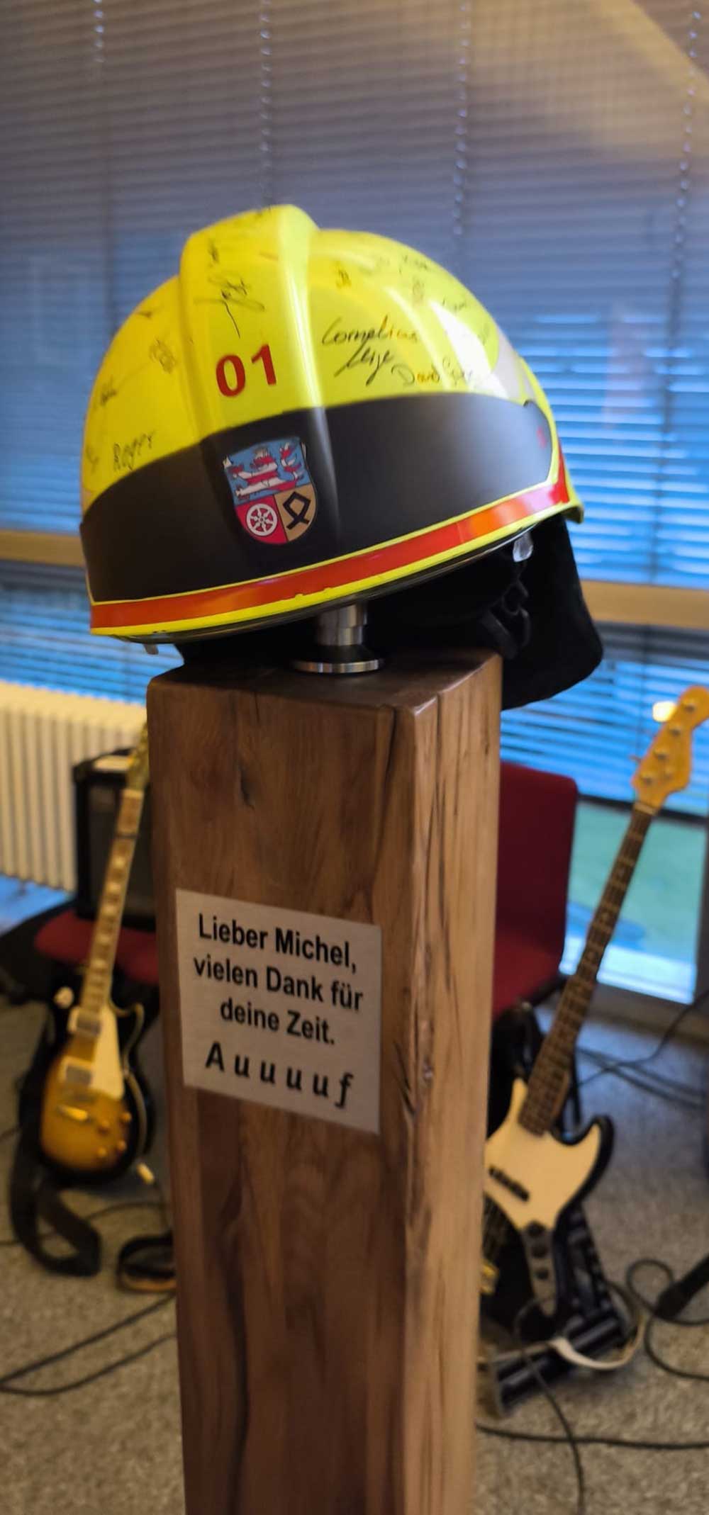 Nach den Grußworten kam noch eine Überraschung für Michael Ahnert, ihm wurde der Landesehrenbrief, die Ehrennadel sowie das Silberne Brandschutzverdienstzeichen am Bande des Kreises Bergstraße, durch Landrat Michael Ahnert überreicht. Die Feuerwehrkameradinnen und Kameraden werden die gute Zeit mit Ahnert nicht vergessen und immer gern daran zurück denken. Die Feuerrwehr übergab Ahnert ein schönes Präsent, einen Feuerwehrhelm mit allen Unterschriften der Kameradinnen und Kameraden und eine Bildergalerie der letzten schönen gemeinsamen Jahren, für diese schöne Erinnerung bedankte sich Ahnert recht herzlich und freute sich sichtlich.