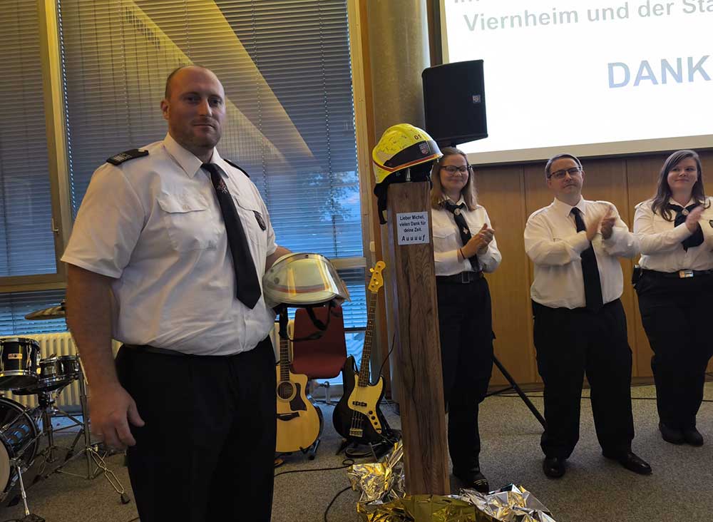 Nach der musikalischen Eröffnung durch die Musikschule Viernheim begrüßte Bürgermeister Matthias Baaß, Michael Ahnert, seine Ehefrau und alle Anwesenden. Baaß bedankte sich für die Zeit, in der Ahnert engagiert für die Freiwillige Feuerwehr und die Stadt Viernheim sein Amt ausführte und wünschte ihm alles Gute, vorallem Gesundheit für seinen Ruhestand. Bürgermeister Baaß und Stadtrat Scheidel übergaben das Dankeschreiben der Stadt Viernheim.
