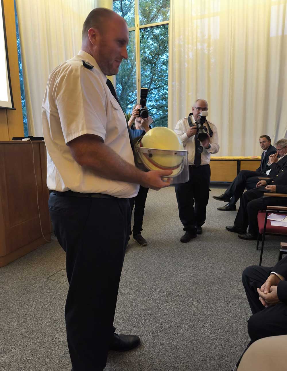 Ich weiß, dass du gesundheitlich gerade vor anderen Herausforderungen stehst als früher in der Einsatzleitung. Aber ich hoffe, dass dir diese Stimmen, dieses Lob und diese Anerkennung heute Abend Kraft geben. Dass du spürst: Da ist eine Gemeinschaft, die dankbar auf dich schaut. Und die sich wünscht, dass du schon bald wieder mehrvorbeischaust und nach den Kolleginnen und Kollegen siehst.