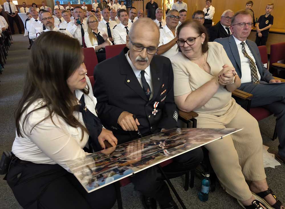 Was wir heute Abend gesehen und gehört haben, macht deutlich, was deine Arbeit über all die Jahrzehnte bedeutet hat – für die Feuerwehr, für die Verwaltung, vor allem aber für die Bürgerinnen und Bürger dieser Stadt. Menschen wie du geben diesem Ehrenamt ein Gesicht. Ein verlässliches. Ein glaubwürdiges. Ein menschliches.