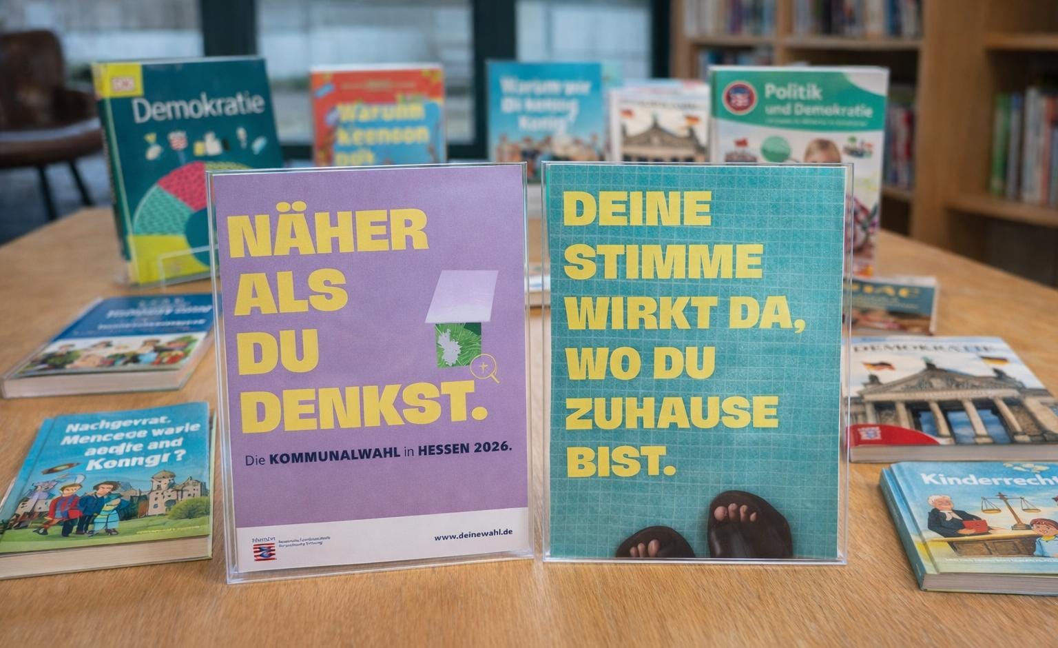 Viernheim (Stadt Viernheim) – Anlässlich der bevorstehenden Kommunalwahlen in Hessen am kommenden Sonntag (15. März 2026) lädt die Stadtbibliothek mit einem thematischen Büchertisch dazu ein, sich über Kommunalpolitik und Mitbestimmung zu informieren. Unter dem Motto „Näher als du denkst.“ wird darauf aufmerksam gemacht, welche Bedeutung politische Entscheidungen auf kommunaler Ebene für das tägliche Leben haben. Der begleitende Slogan „Deine Stimme wirkt da, wo du zuhause bist“ verdeutlicht dabei die zentrale Botschaft der Aktion.