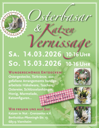 Hier ist sind die Termine für unseren letzten Osterbasar mit Katzenvernissage !