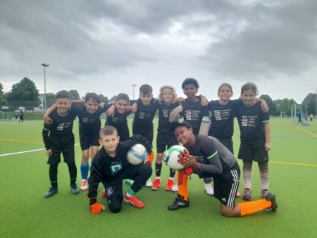 Viernheim (C.Wunderle) – Nass waren die Trikots, als am Ende Mitorganisatorin Tanja Spieker vom Organisationsteam des Grundschulfußballturniers die insgesamt 18 teilnehmenden Schulmannschaften aus dem Kreis Bergstraß ehrte. Petrus meinte es an diesem Tag nicht gut, daher wurde auf die Biathlonstaffel verzichtet.