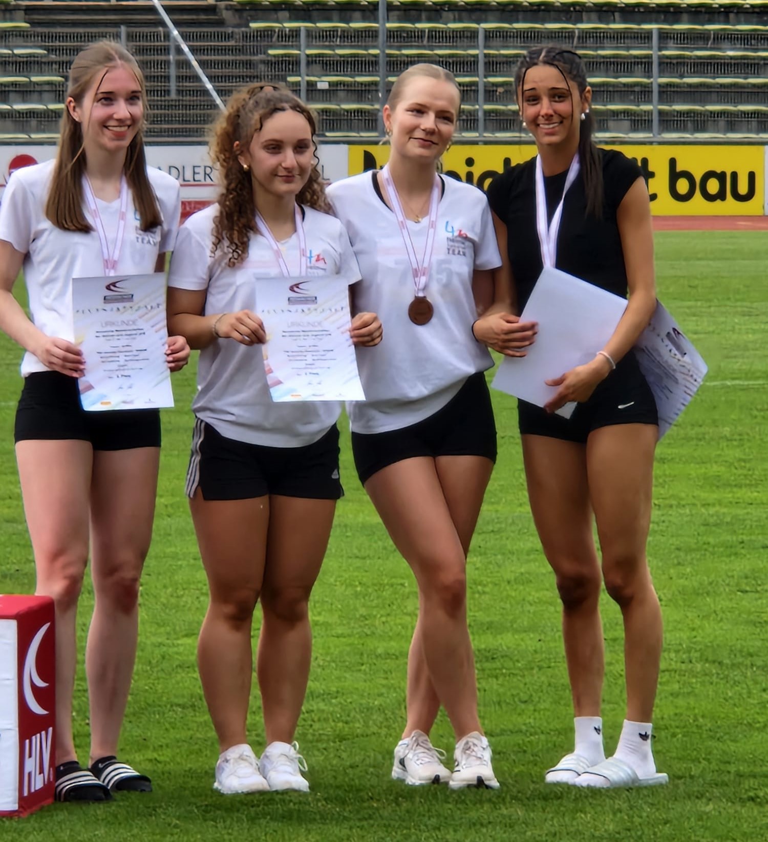 Eine echte Premiere feierte die 4x100m-Staffel der Frauen. In neuer Konstellation mit Marlene Schinagl, Alesia Gojani, Kira Hambücher und Zoe Amougou-Janzer als Schlussläuferin, überzeugte das Quartett mit sauberen Wechseln und Teamgeist. In 50,01s liefen sie auf den dritten Platz und sicherten sich damit die Bronzemedaille – die Freude im Team war riesig.
