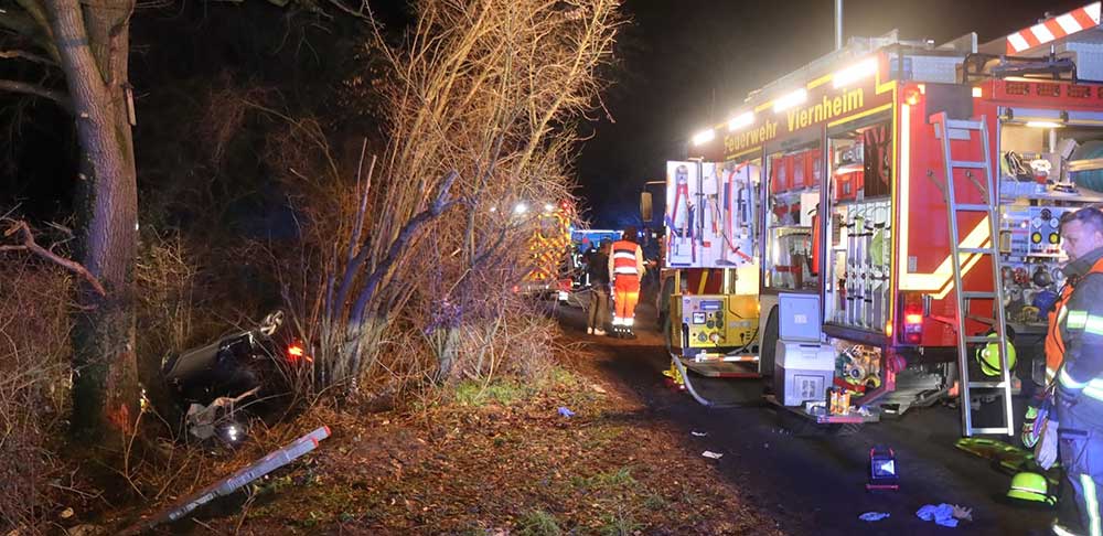 Viernheim (ots/Polizeipräsidium Südhessen) – Am Freitag (16.01.2026) kam es gegen 23:30 Uhr auf der Straße „Am alten Weinheimer Weg“ in Viernheim zu einem schweren Verkehrsunfall.