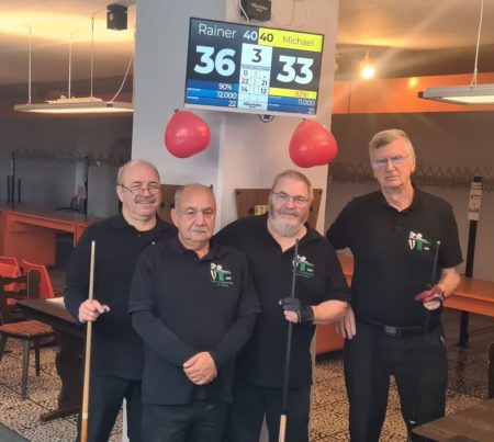 Die ersten beiden Partien gingen noch an die Gäste, doch die Viernheimer gaben sich nicht geschlagen. Dann folgte der große Auftritt von Hans Peter, der mit der Tagesbestleistung und einem beeindruckenden Generaldurchschnitt von 0,975 sein Match dominierte. Sein Sieg brachte die Viernheimer zurück ins Spiel und sorgte für die nötige Aufbruchstimmung im Billardheim.