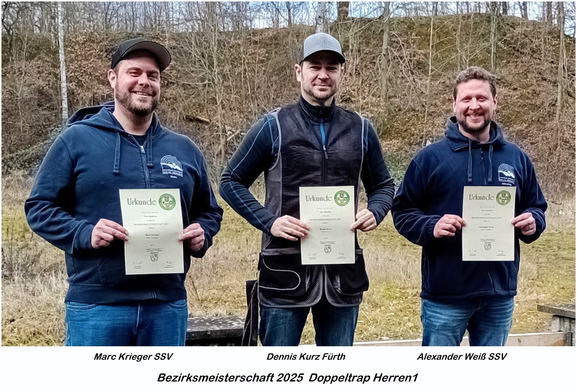 In der Disziplin Doppeltrap zeigten die Herren I ebenfalls starke Leistungen. Dennis Kurz aus Fürth gewann den ersten Platz, gefolgt von Mark Krieger (2. Platz) und Alexander Weiß (3. Platz) – beide aus Viernheim.