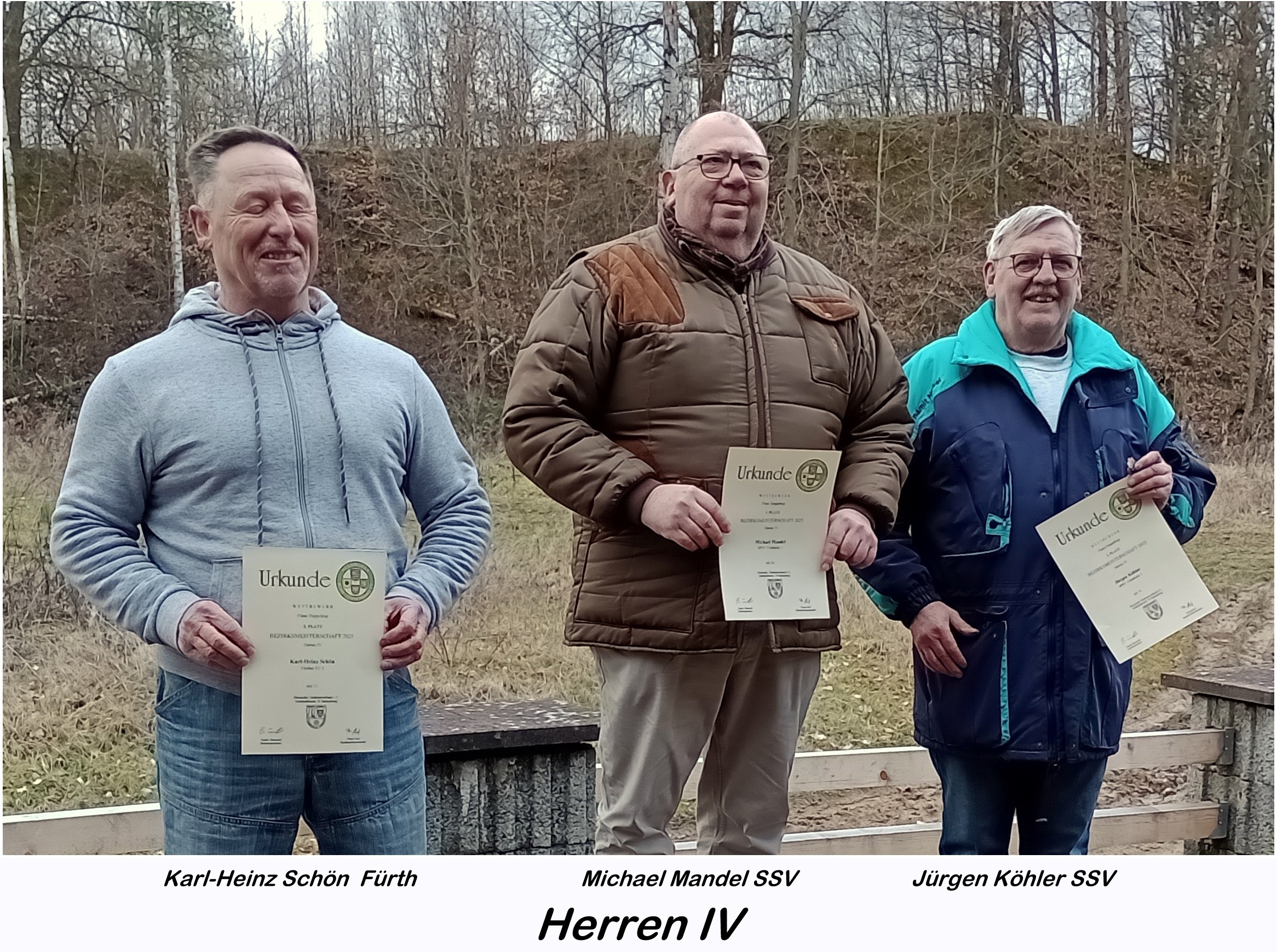 Besonders erfolgreich verlief der Tag für Michael Mandel, der in der Klasse Herren IV sowohl im Trap als auch im Doppeltrap triumphierte. Mit 61 Treffern sicherte er sich den Bezirksmeistertitel im Trap vor seinem Vereinskollegen Dieter Hoffmann und Kurt Osterling aus Fürth. Im Doppeltrap gewann Mandel erneut Gold, diesmal vor Karl-Heinz Schön (Fürth) und Jürgen Köhler (Viernheim).