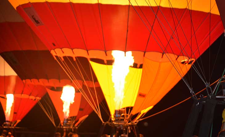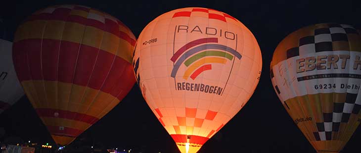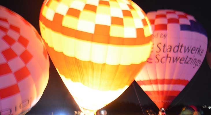 Gleich zwei Highlights gab es am Samstagabend, bei Einbruch der Dämmerung gab es einen Kunstflug mit Rauch. Gleich danach fingen fünf Ballonkapitäne mit ihren Teams an, die Ballons zusammen zubauen, die dann bei Dunkelheit glühten. Hunderte von Menschen strömten auf den Platz um das Ballonglühen zu bestaunen, das glühen der Heißluftballons kam bei ausgewählter Musik fabelhaft zur Geltung. Die Zuschauer waren begeistert, so das nach ca. 30 Minuten um eine Zugabe gerufen wurde, die Kapitäne kamen dem Wunsch sehr gerne nach. Viele Zuschauer waren sich einig das nächste mal sind wir wieder dabei.