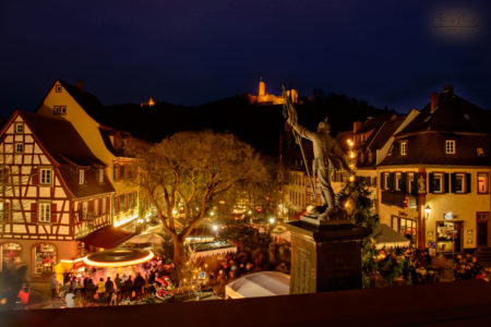 Weinheim (Stadt Weinheim) – Wenn der Duft von Glühwein die Luft erfüllt, stimmungsvolle Lichter den historischen Marktplatz erleuchten und weihnachtliche Melodien die Straßen durchziehen, dann ist es wieder soweit: Der Weinheimer Weihnachtsmarkt öffnet seine Tore. An den letzten drei Adventswochenenden, jeweils von Freitag bis Sonntag, lädt die Stadt Weinheim gemeinsam mit der IG Marktplatz, die größtenteils für die Organisation verantwortlich ist, zu dem traditionellen Adventserlebnis in der besonderen Kulisse des Platzes ein, der im Sommer wie eine italienische Piazza aussieht – und im Winter mit der mächtigen St. Laurentiuskirche, dem angeleuchteten alten Rathaus und funkelnden Sternen in den Bäumen zum Weihnachtsmarktplatz unter den beiden Burgen wird.