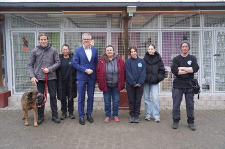 Landrat Christian Engelhardt bedankt sich bei Mitarbeitenden des Tierschutzvereins Viernheim und Umgebung e.V. für ihr Engagement