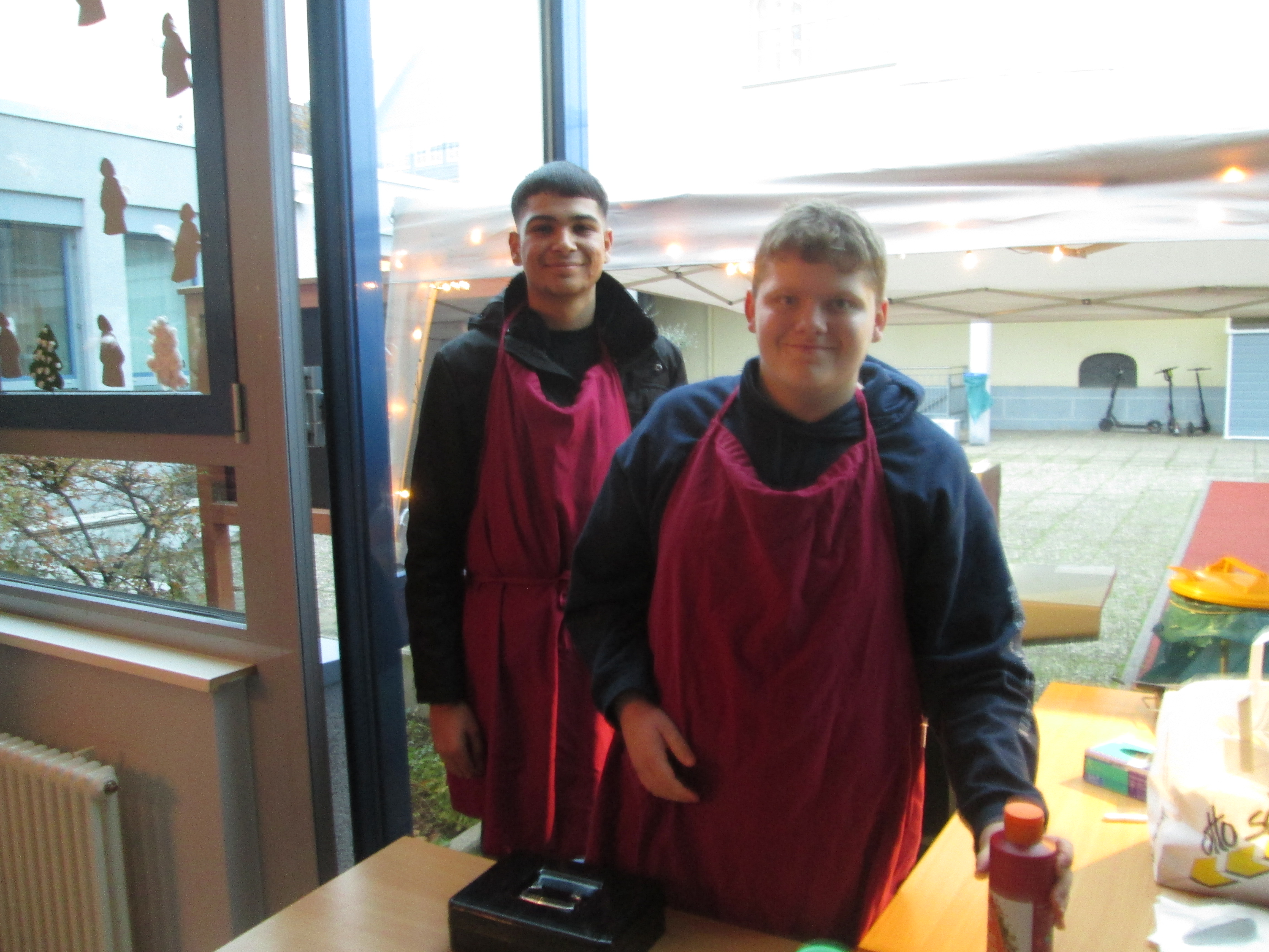 In der Mensa gab es Getränke, frische Waffeln, Kuchen und mehr. Ein Grillstand der Berufsorientierungsstufe rundete das Angebot ab. Die vorweihnachtliche Atmosphäre lädt jedes Jahr zum gemütlichen Beisammensein ein.