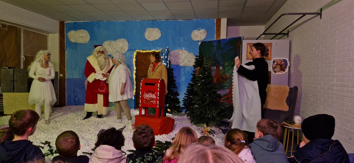 Diesen hatte sich das engagierte Mitarbeiterteam auch redlich verdient. Für das Weihnachtstheater, das alljährlich von einem Ensemble des Mitarbeiterteams aufgeführt wird, wurde mit dem Gesamtteam tags zuvor der Turnraum in ein traumhaftes Bühnenbild verwandelt. Davor hatten regelmäßige Proben stattgefunden für ein Theaterstück das aus der Feder einer der Schauspieler kam. Große Augen und Ohren machten die kleinen und großen Besucher schon bei der ersten voll besetzten Vorführung, die kurz nach 17 Uhr begann und neben besinnlichem vor allem für viel Spaß sorgte. Um dem großen Andrang zu entsprechen gab es gegen 18.15 Uhr eine zweite Vorstellung.