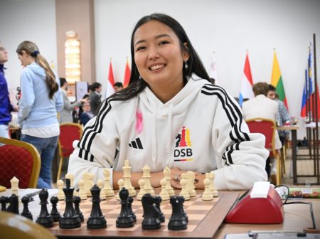 In München waren die beiden Ukrainer noch nicht mit von der Partie, stattdessen ein weiterer EM-Held und eine EM-Heldin. Dinara Wagner, die am ersten Brett die deutsche Nationalmannschaft der Frauen zu Bronze geführt hatte, stand im Kader, außerdem Jorden van Foreest. Gerade erst ist der niederländische Neuzugang, Nummer 35 der Welt, Europameister im Blitzschach geworden. In München steuerte er jetzt 1,5 Punkte zu zwei Viernheimer Kantersiegen bei.